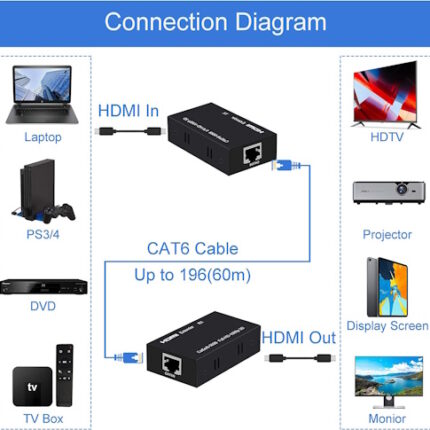 HDMI Extender Over Single Cat5/Cat6 Ethernet Cable Up to 60M/196ft
