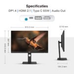 - Interface: DP1.4×1, HDMI 2.1×1, Type C 65W×1, Audio out×1