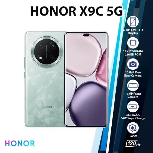 HONOR X9c 5G 12GB RAM, 256GB ROM 6.78″, 6600mAh Android 14. The HONOR X9c 5G 12GB RAM is designed for those who enjoy adventure. It boasts an impressive 108MP primary camera with OIS, a Snapdragon 6 Gen 1 engine you’ll have the space and speed to store your memories and run your favorite apps without a hitch, and a 6.78-inch AMOLED screen.