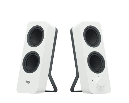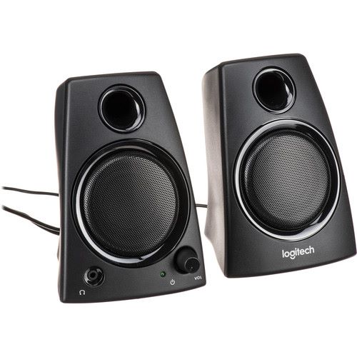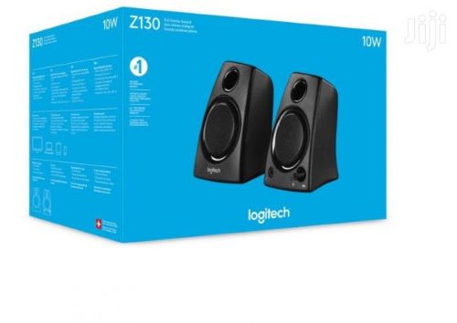 Logitech Z130 2.0 Stereo, Speakers with Easy Controls. The Logitech Z130 2.0 Stereo from Logitech are an affordable, straightforward. Easy-to setup and easy-to-use solution for your laptop or desktop audio needs. These speakers push a total of 5 watts of power and deliver clear, strong sound. Built-in to the speakers is a 3.5 mm headphone jack as well as a power and volume control knob. To get started, connect a 3.5 mm cable from the audio input jack on the back of the speakers to a 3.5 mm audio output jack on your laptop or on your desktop’s sound card.