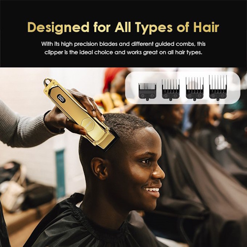 Designed for All Types of Hair: With its high precision blades and different guided combs, this clipper is the ideal choice and works great on all hair types.