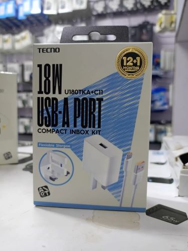 Tecno U180TKB+C11 2x Faster, 18W Fast Charger & Type-C Cable. Discover the Tecno U180TKB+C11 2x Faster, a premium charging solution to enhance your charging experience. This charger offers advanced technology and convenience, making it an excellent choice for tech enthusiasts and travelers.